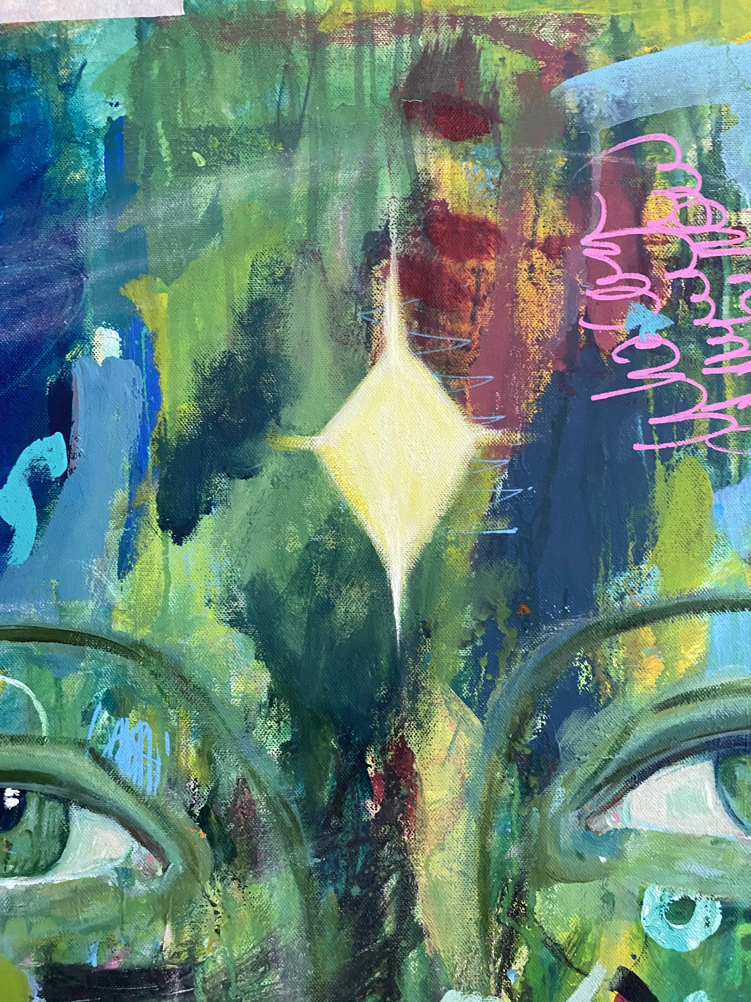 As an abstract artist, my process often begins with layered, spontaneous backgrounds. Yet, as I work, forms emerge almost on their own. In this piece, the portrait was not planned; it revealed itself, transforming from abstraction into presence. Each mark carries emotion, each layer a step in the journey of expression. The figure is both born from the background and inseparable from it—like the way our emotions, transformations, and inner spirit arise from life itself.